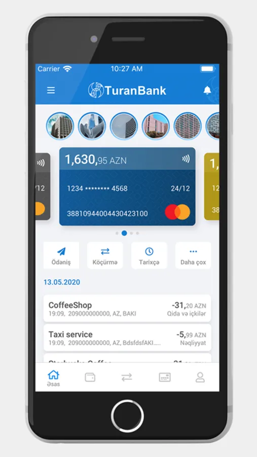 TuranBank mobile application is designed for your convenience. You can benefit from the following banking services by uploading the mobile application of our bank: