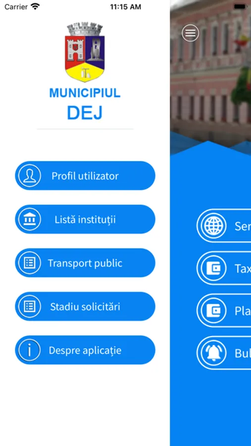 MUNICIPIUL DEJ - SERVICII ELECTRONICE este o aplicație mobilă de servicii electronice lansată de Primăria Municipiului Dej care pune la dispoziția cetățenilor Municipiului Dej noi servicii electronice relevante pentru utilizarea în context de mobilitate: informații referitoare la transportul public, la parcările publice, la datele de contact și programul de funcționare al instituțiilor administrației locale, interogarea stadiului de rezolvare a solicitărilor depuse, plata electronică.