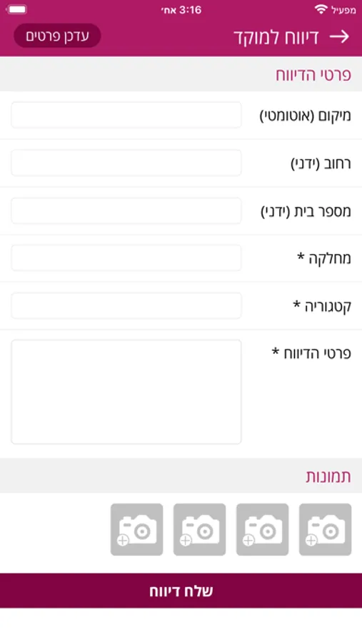מיד לאחר השליחה אתם תקבלו מספר דיווח והודעות פוש ומייל עם שם המחלקה המטפלת בדיווח, ובנוסף תקבלו הודעות פוש ומייל לגבי הטיפול בדיווח וישירות מהגורם המטפל.