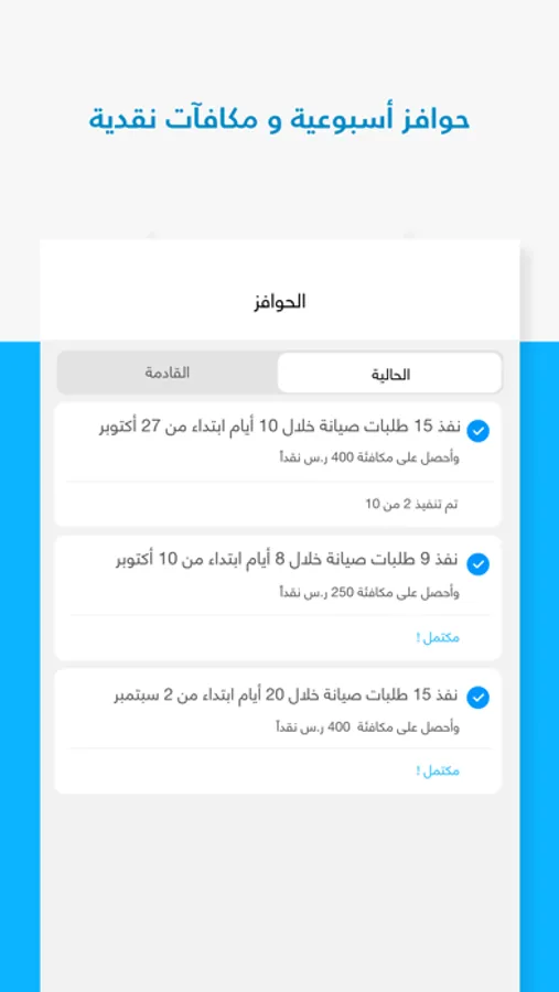 تُرسل الحوافز لخبراء الصيانة و عند تنفيذ 10 طلبات خلال أسبوع يتم تحويل نقداً يصل الى 450 ر.س.