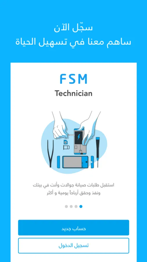 انضم لفريق خبراء FSM - التطبيق الأول لصيانة الجوالات في الرياض، وحقق مدخولاً أكثر من دخل محل اخر ثابت. كن مدير نفسك وتحكم بمدخولك، واختر ساعات عملك بنفسك من دون أن تلتزم بدوام محدد.