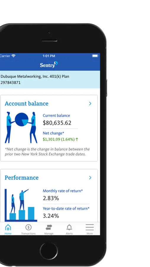 After registering your account and enrolling in your company’s retirement plan, you can use the Sentry Retirement app to: