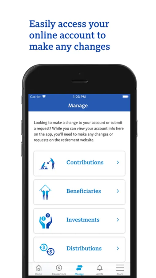 Whether you want to see how your investments are performing or check on withdrawal amounts, you can find information about your retirement account on our easy-to-use app.