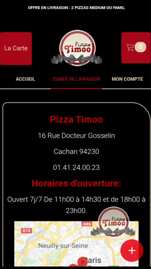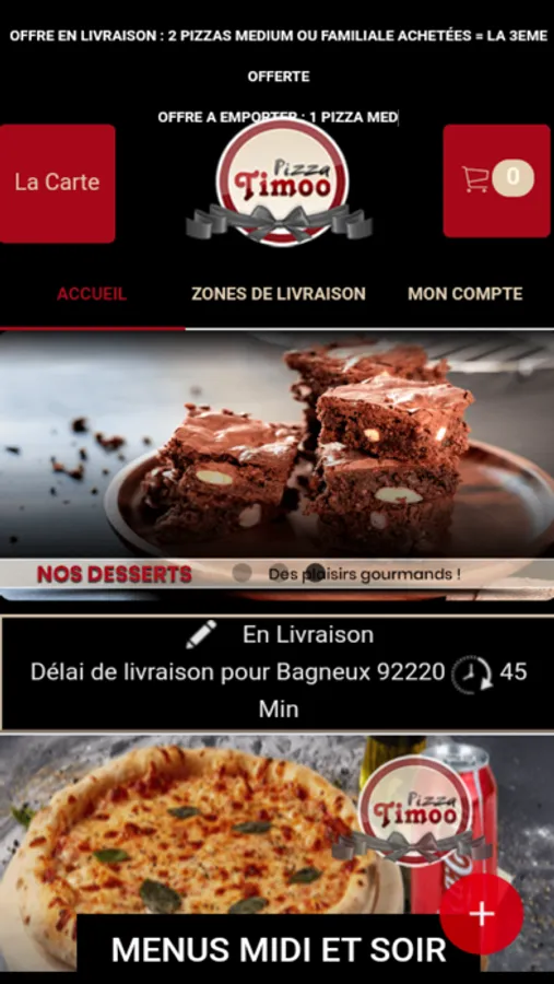 L'application Pizza Timoo vous permet de commander en ligne ou par téléphone via votre application. Vous pouvez consulter notre carte et choisir vos produits.
