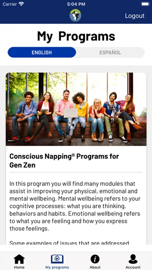 Online, bilingual guided visualization designed to awaken your full potential. Conscious Napping® provides 6 Core Courses that address Stress, Sleep, Pain, Weight loss, and Tobacco cessation. It also addresses three areas of Wellbeing: Physical, Financial and Emotional/Mental. In all, 100+ modules that average less than 10 minutes each to address issues that concern your physical, financial, and emotional/mental health and wellbeing. Conscious Napping® is available only through your employer, organization or your healthcare professional.