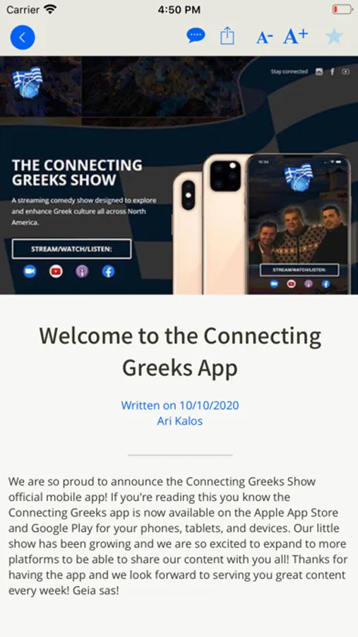 The Connecting Greeks show features fun and interesting guests discussing their life, passions, careers, and connection to Greek culture and Hellenism.