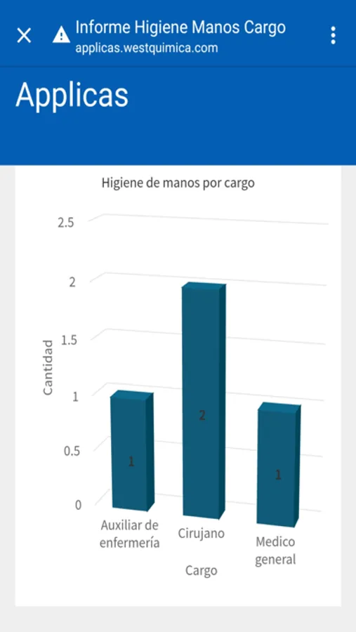 Applicas es una app diseñada para todas las instituciones de salud del mundo, en este momento se encuentra instalada en mas de 30 hospitales de Colombia, con un total de mas de 500 usuarios, lleva solo dos meses en produccion y ha conseguido elevar el nivel de proteccion tanto de los pacientes como del personal de salud de las instituciones. con Applicas las instituciones de saliud automatizan la recoleccion de datos, aumentan la medicion y auditoria que contribuyen a los 5 momentos de la higiene de manos y permite demostrar con datos reales la adherencia entre los trabajadores de la salud, ademas, permite de forma muy simple, llevar un registro detallado de limpieza y desinfeccion de los cuartos hospitalarios.