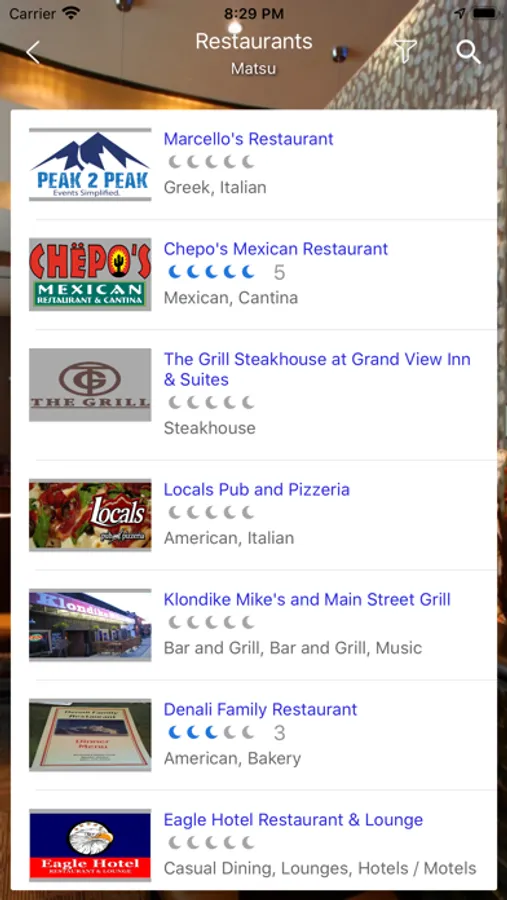 * Search the Events/Specials Calendar for Restaurants, Bars,