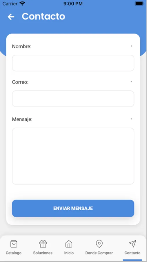 Catalogo, para uso y consumo de nuestros clientes, la aplicación cuenta con 5 secciones diferentes donde podrás encontrar la siguiente información