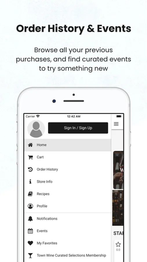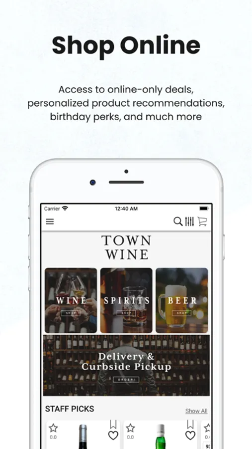 With the App you can browse for the wines & spirits available in the store, and also order a delivery or pickup.