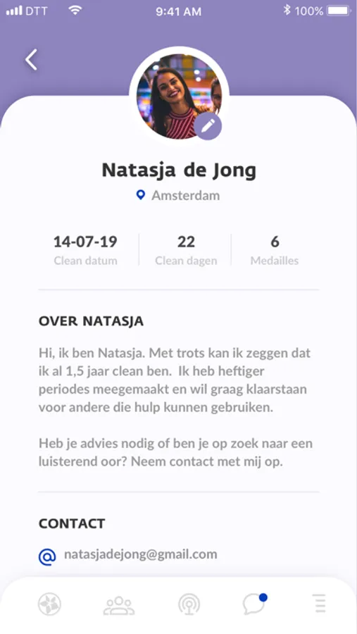 • Cleandatum en tracker: voer je cleandatum in zodat je bij kunt houden hoelang je nuchter bent wanneer je de app opent.