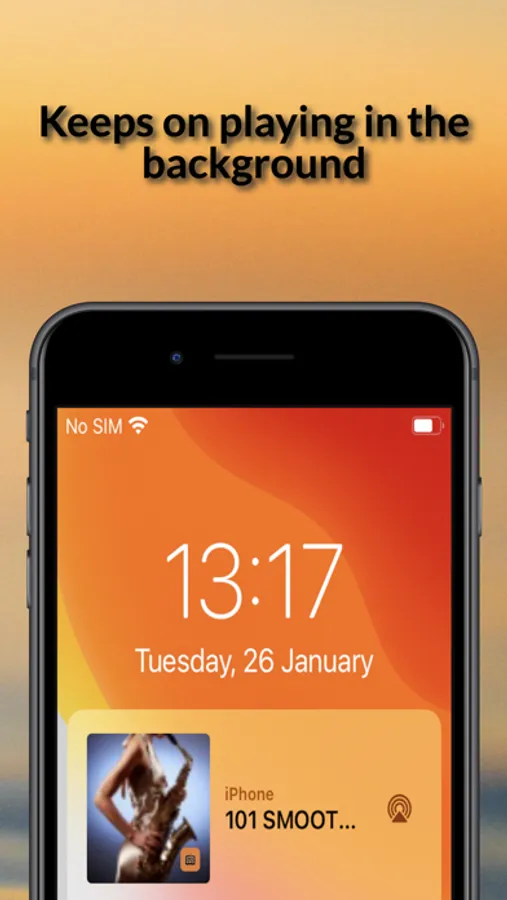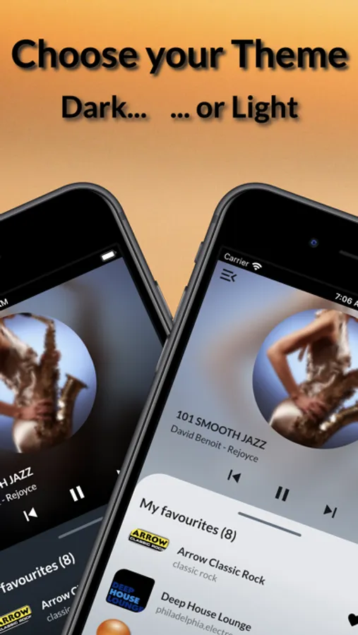 Has a selectable theme and will keep playing in the background.