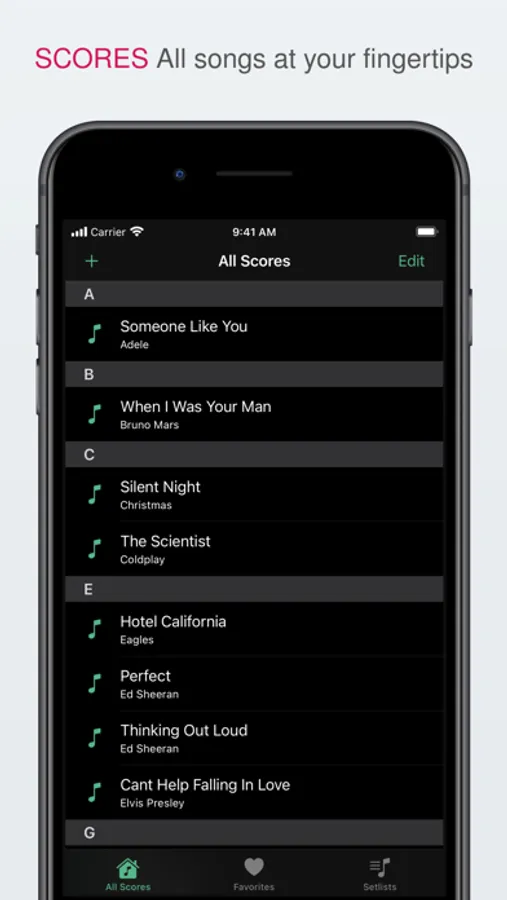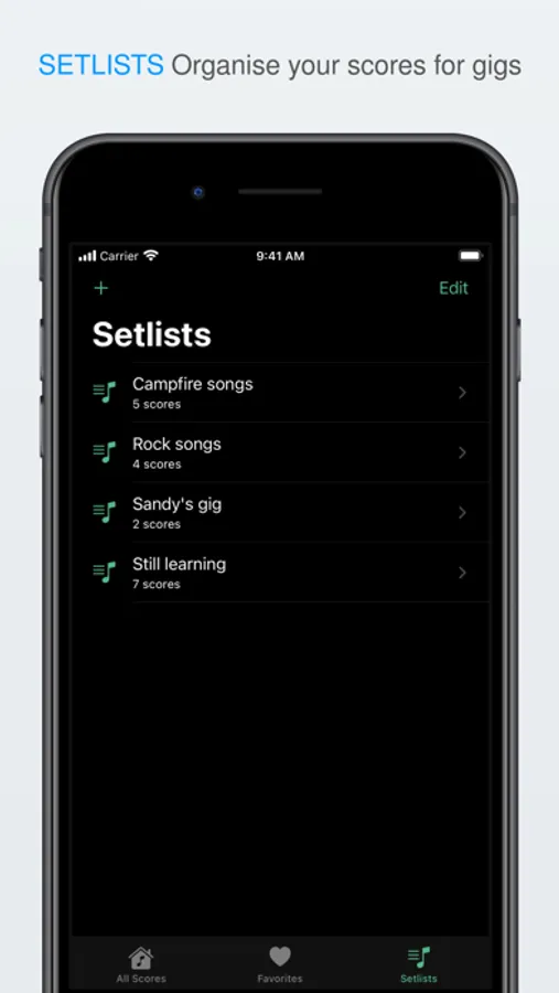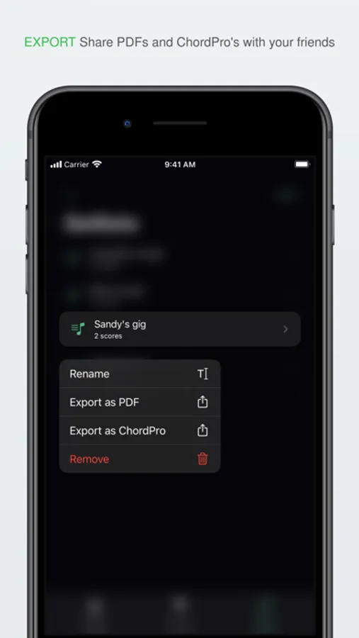 • Export scores and setlists as a PDF scorebook or ChordPro