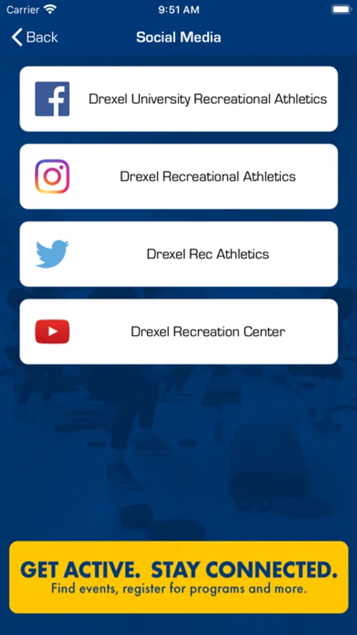 Drexel Rec allows students and members quick access to Drexel Recreation Center’s facility hours and updates, facility and class reservations, group exercise schedule, intramural sports and more. FusionGo also assists during times when you leave your Dragon Card or membership card at home. In a few simple steps, FusionGo provides you with a barcode that works just as your Dregon Card would have worked to grant your access inside the Rec Center.