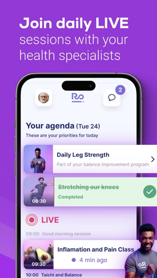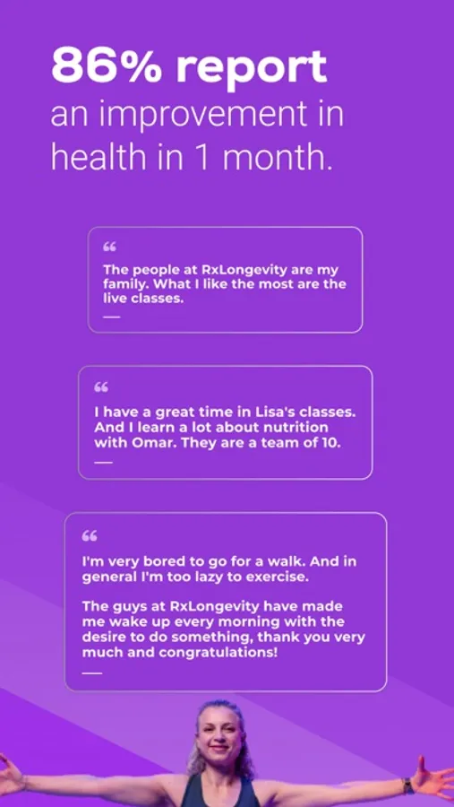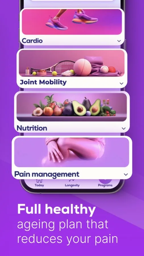 Our App is designed for 60+, combining physiotherapy, exercises, nutrition, and education from experts in longevity.