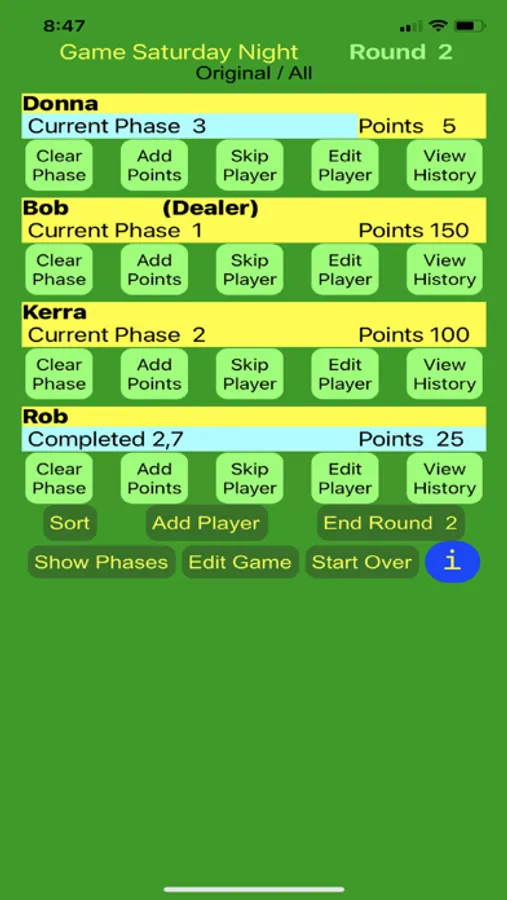 Phase 10 Easy Score keeps track of who is dealing, but only if you want it to do so.