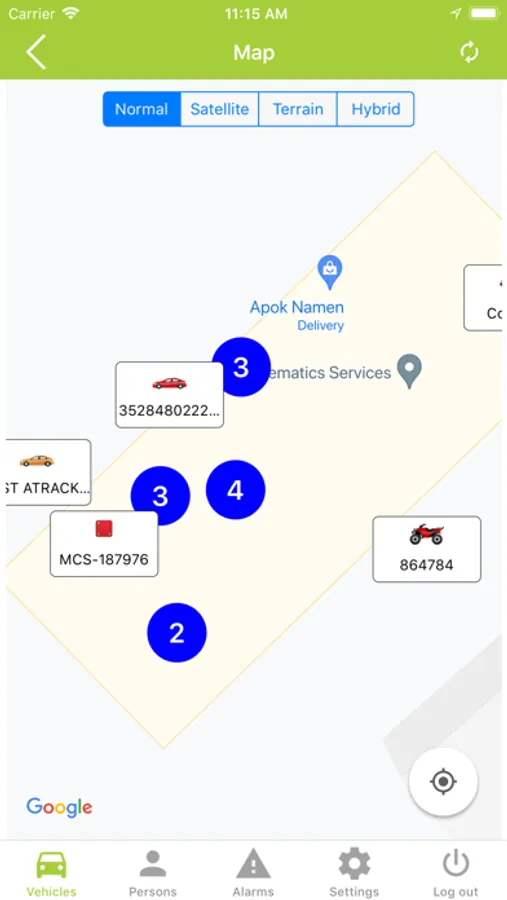 - Module cartographique : Visualisez vos véhicules et votre personnel sur une carte (avec les photos satellites en option).