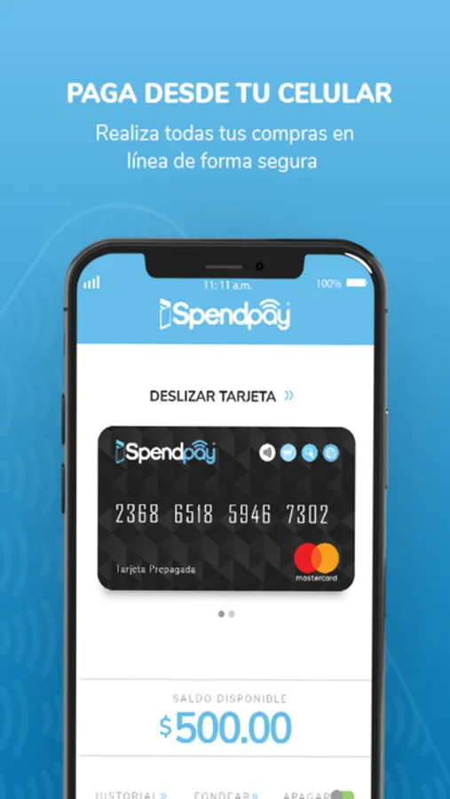 SpendPay es una tarjeta digital respaldada por MasterCard® que se utiliza para compras en línea. la tarjeta existe únicamente de forma virtual y toda la información es almacenada en el wallet de tu teléfono compatible y a través de la aplicación móvil SpendPay.
