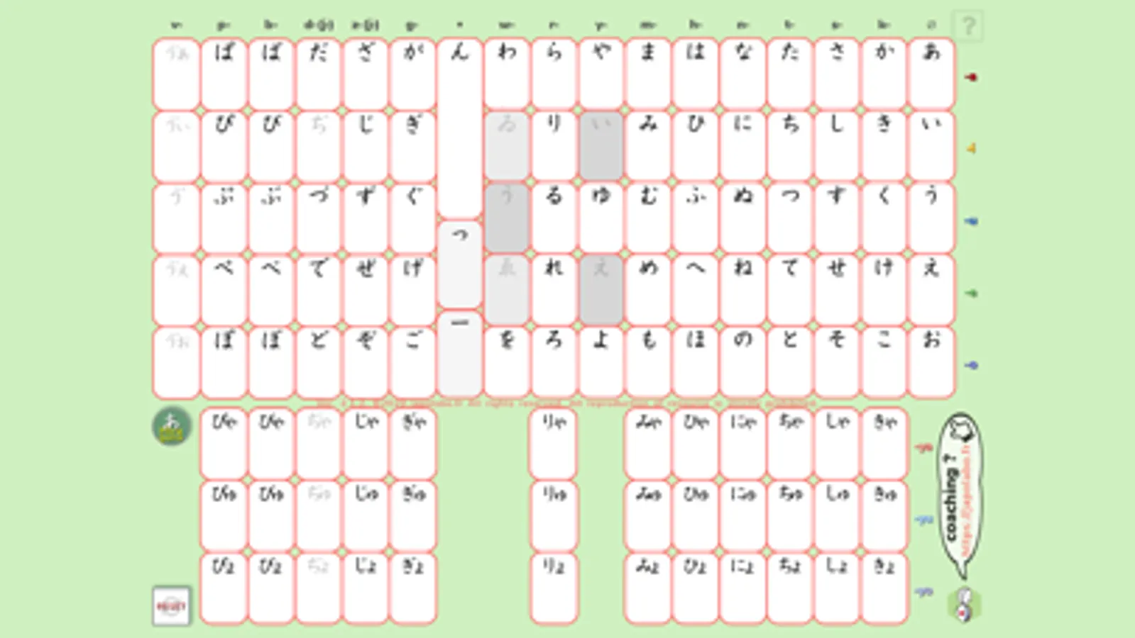 2) Using a small feature "hide and seek" (buttons at the bottom left), let's memorize Hiragana, Katakana, Rōma-ji (romanization of Japanese) and IPA (International Phonetic Alphabet).