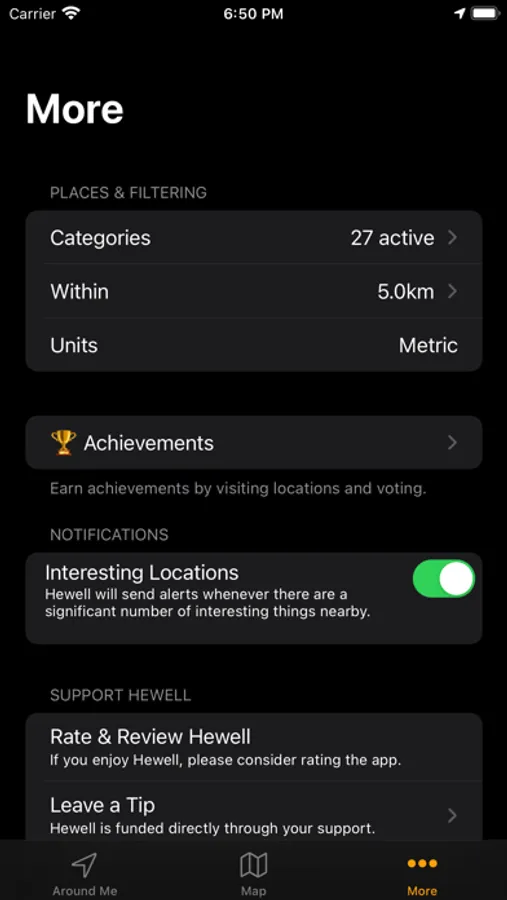 Hewell also makes learning history fun! Earn bespoke achievements you vote on and recommend places you've visited. And since Hewell is powered by Wikipedia, there's always something interesting to learn at every location.