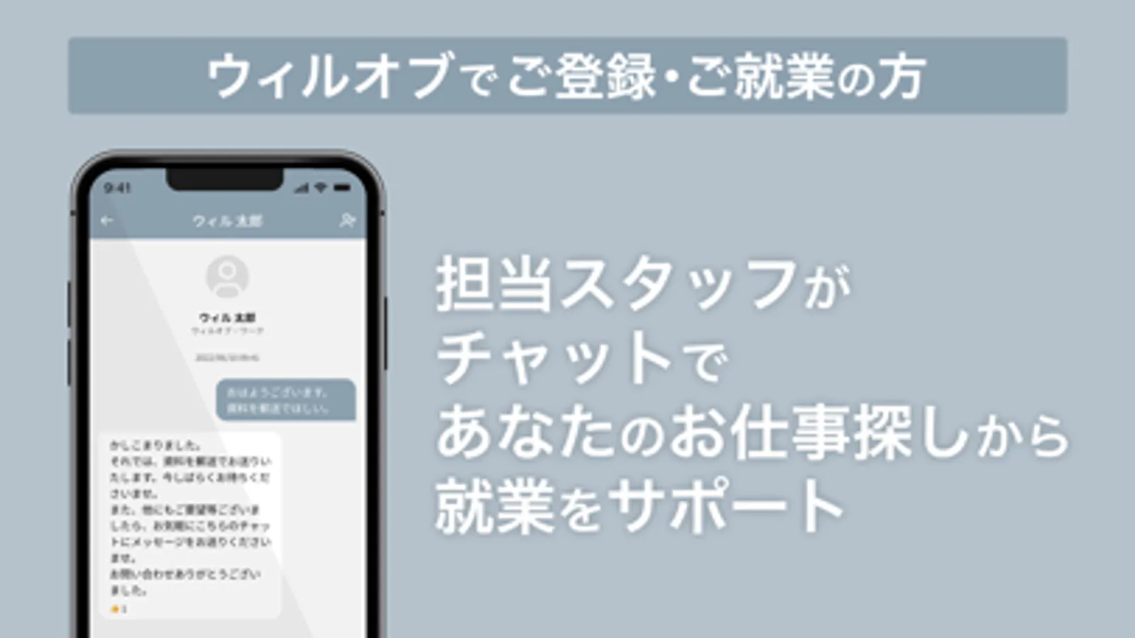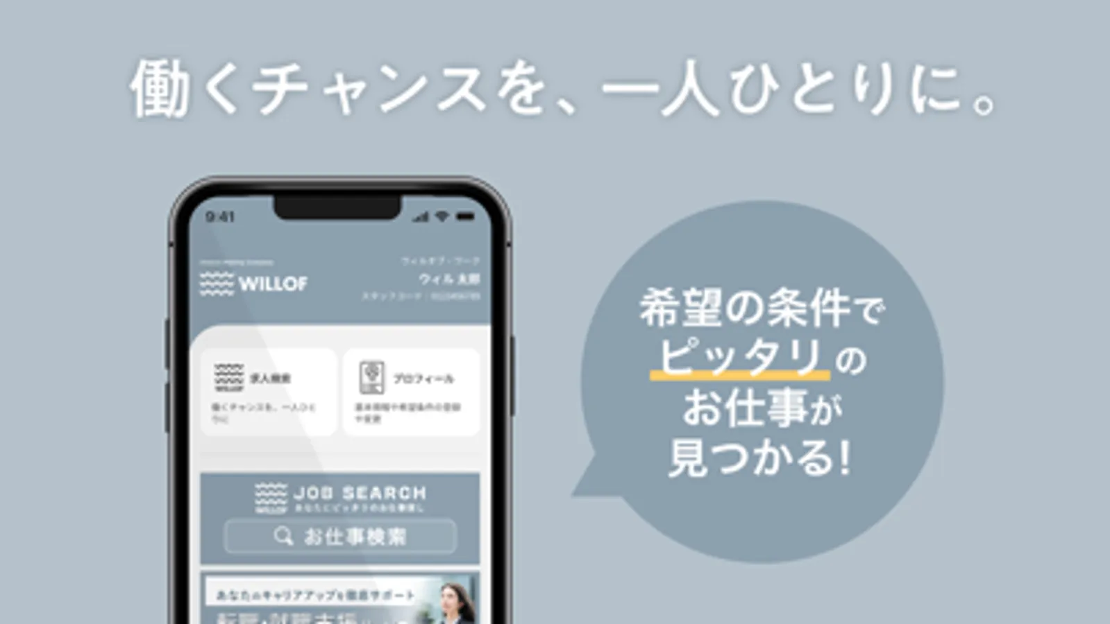株式会社ウィルオブ・ワーク、株式会社ウィルオブ・コンストラクションで、お仕事探しをされる方、就業されている方をサポートするアプリです。