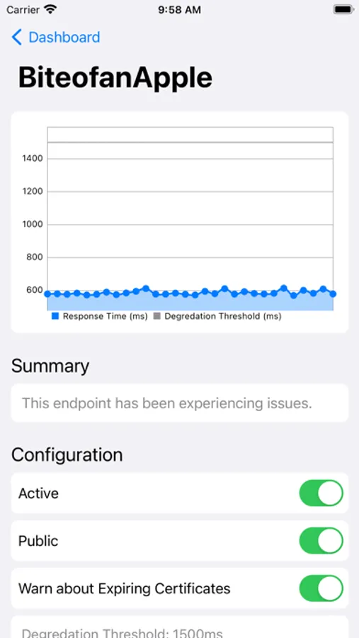 Use Nine9s anywhere with the official iOS app! Check on your endpoints, make changes, and get push notifications when your endpoints go down or degrade. The app is designed to be extremely easy to use so that you can do what you need, and then get back to the work that matters most.