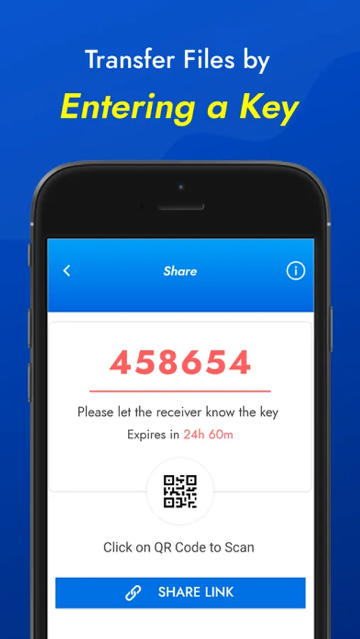 - Either share this key with the receiver or ask the receiver to scan the QR Code with their device.