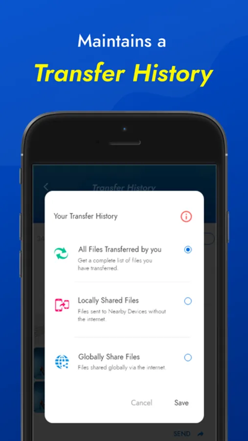 The local share is used to share large files wirelessly over the air with nearby devices. Local share does not need internet, BlueTooth, or cables; instead, it merely connects to two devices via a WiFi hotspot to share files. Share files at speeds of upto 300 times faster than BlueTooth.