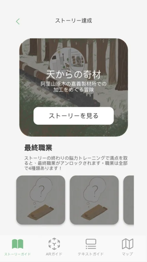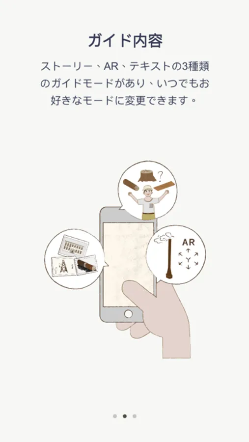 ストーリー、AR、テキストの3種類のガイドモードがあり、いつでもお好き