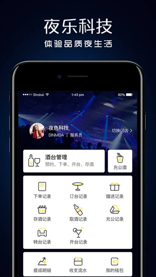 营销人员可在夜乐营销端上浏览自己所在场所的酒水价格及套餐费用,通过APP完成点单操作。