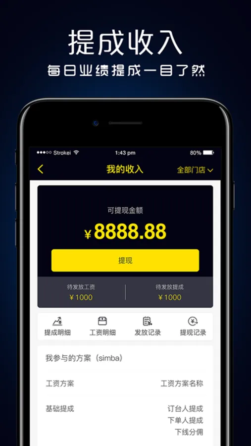 营销人员可以查看自己每日完成的销售额,每月团队与个人任务的完成情况,个人业绩提成一目了然。