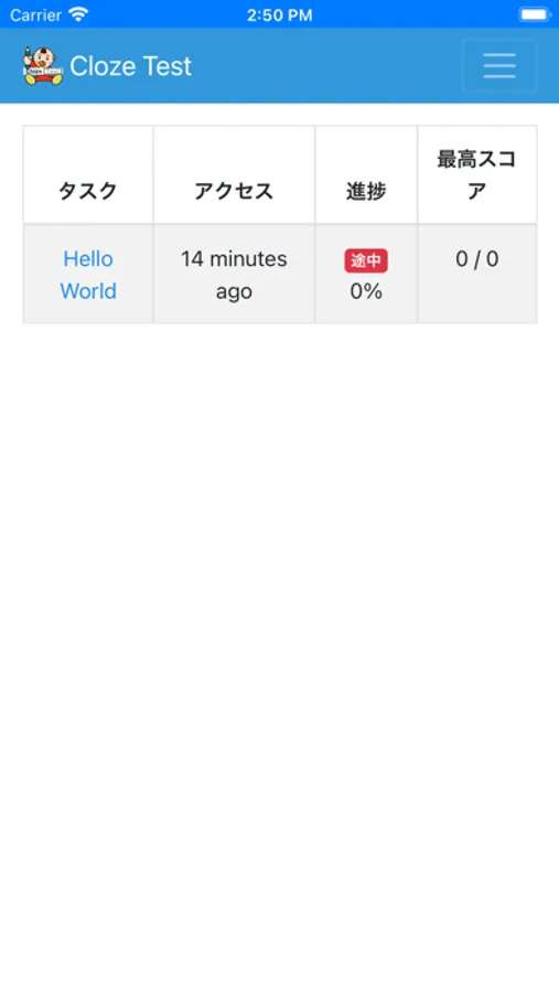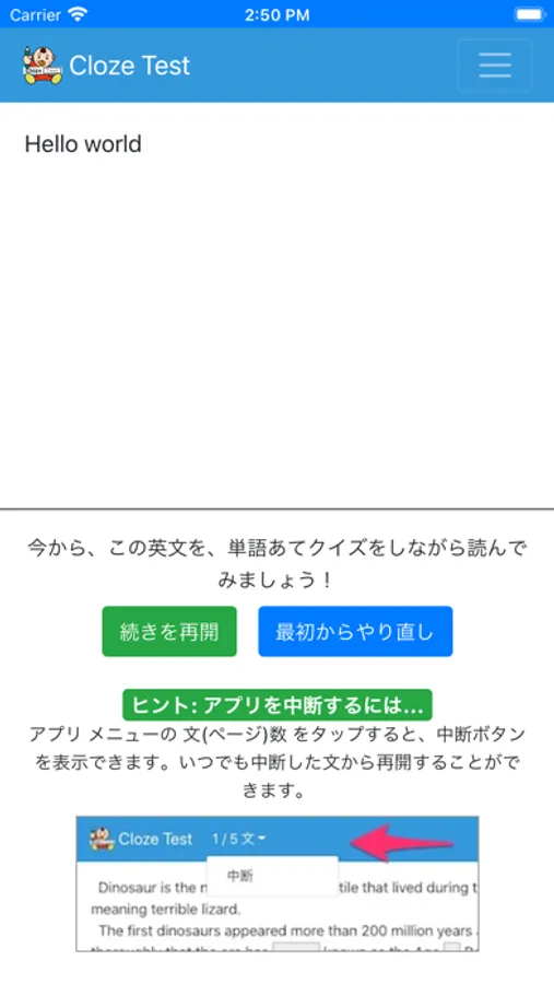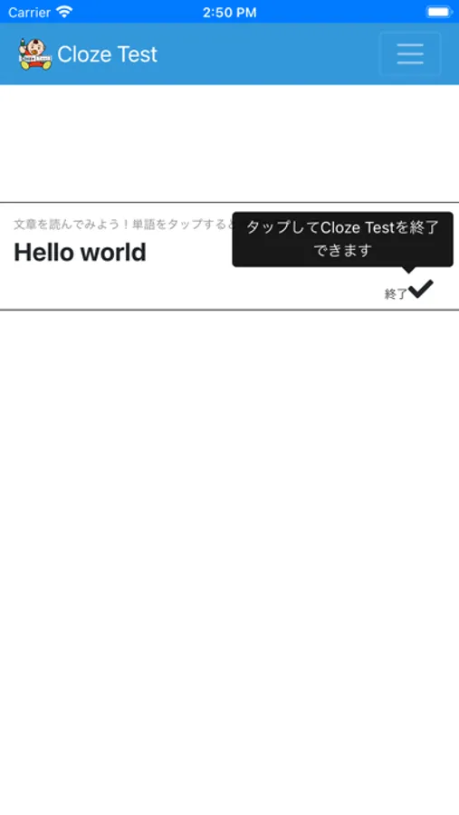 Cloze Test Screenshots