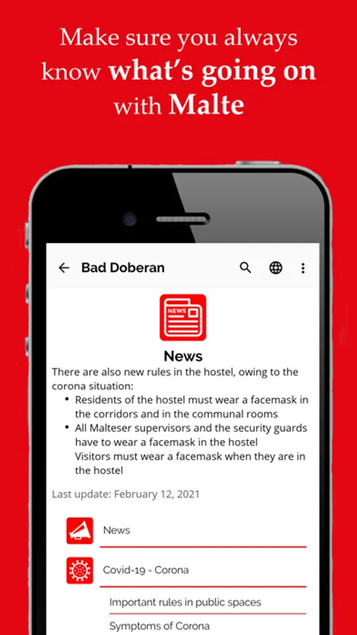 With Malte, you can get all the newest information from your hostel anywhere, at any time, digitally!