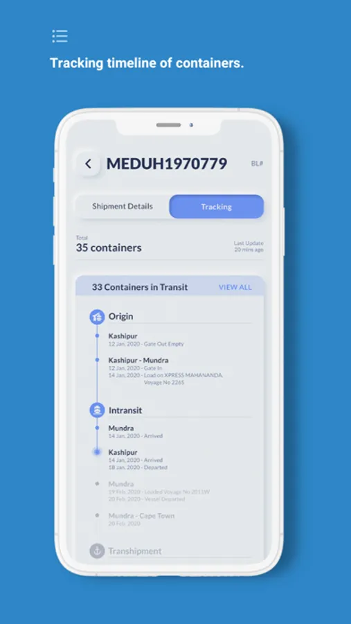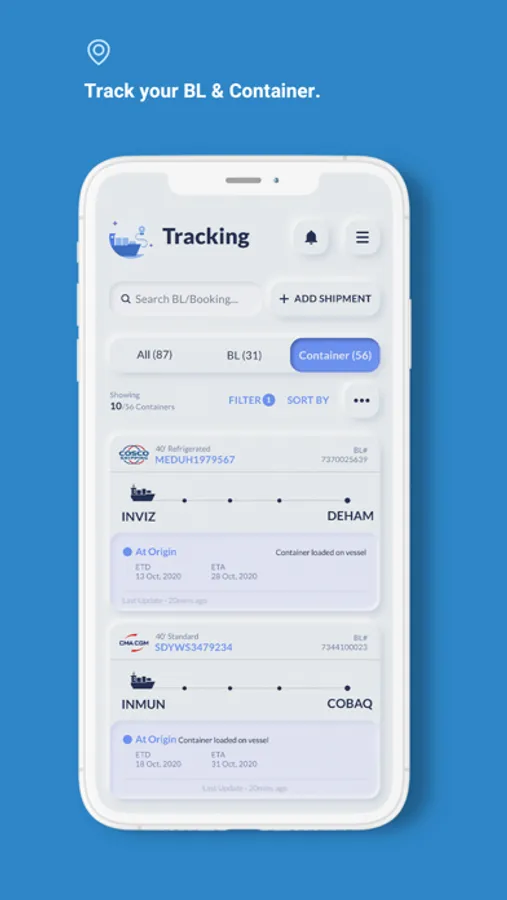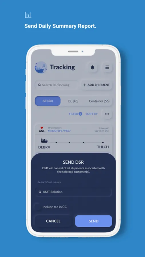 - One dashboard to track your entire shipments across all major shipping lines globally. - Single-click sharing of delays and notifications with your consignees, and automated DSRs (Daily Shipment Reports) to support your client engagement.