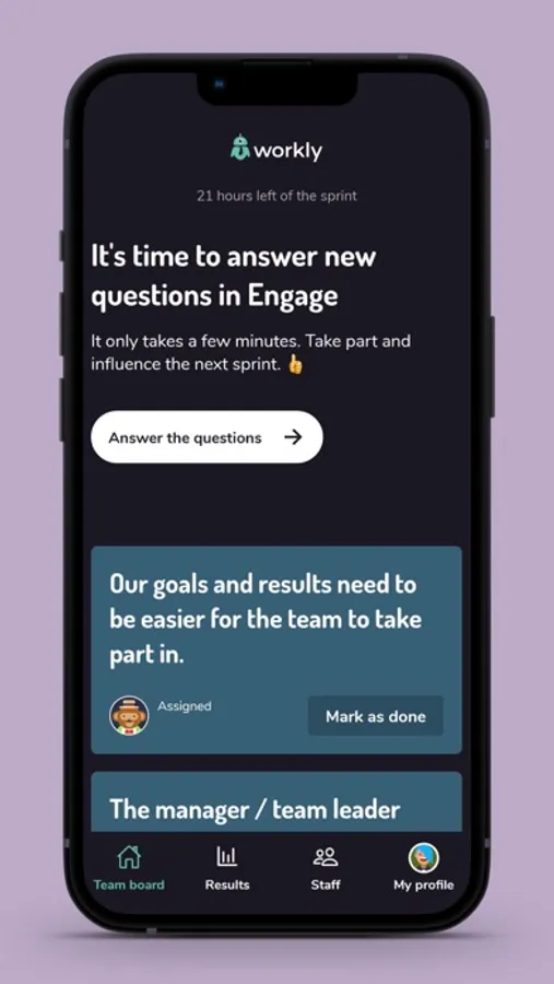 Worklys innovativa lösning förbättrar medarbetarnas engagemang och driver företagets teams mot ett närmare samarbete. Appen samlar in värdefull feedback från medarbetarna och skapar åtgärder baserat på synpunkterna. Workly hittar därmed inte bara problemen på arbetsplatsen utan presenterar även lösningarna. Med enkel åtkomst till de viktigaste insikterna om dina team erbjuder Workly unika möjligheter för Human Resources för att bygga en bättre arbetsplats.