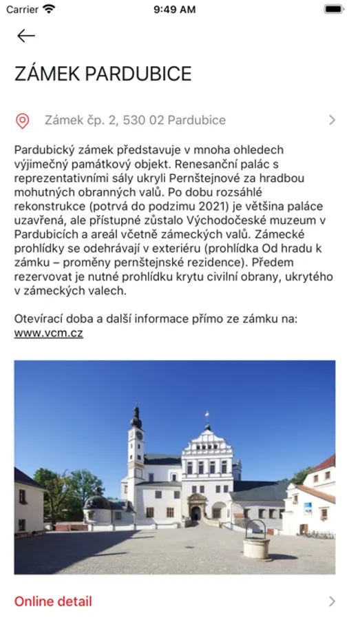 Průvodce - kulturní památky a zajímavá místa s informacemi a zobrazením na mapě.