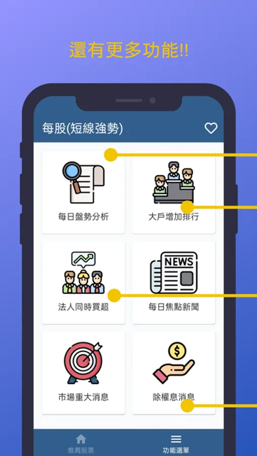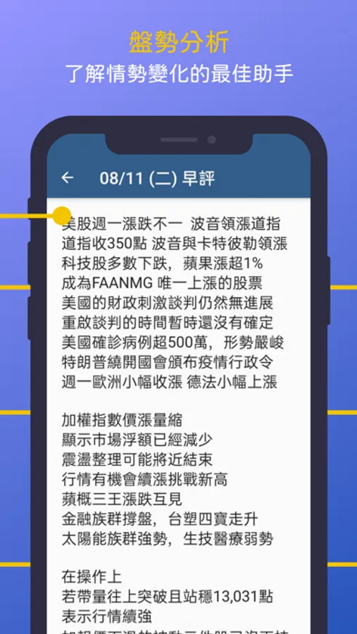 ● 每日盤勢分析: 每日由專業券商不定時提供每日盤勢分析、投資策略