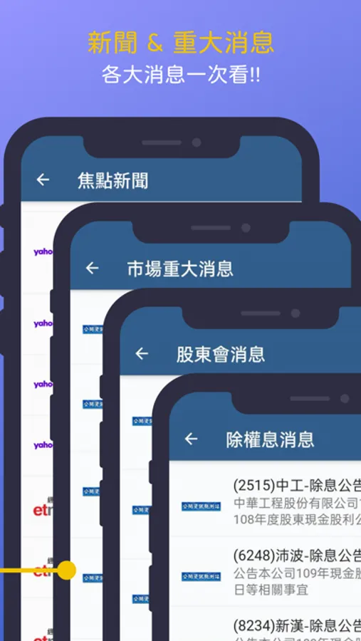 ● 串聯各家股市資料, 一支APP就可以查看各家股市資料。