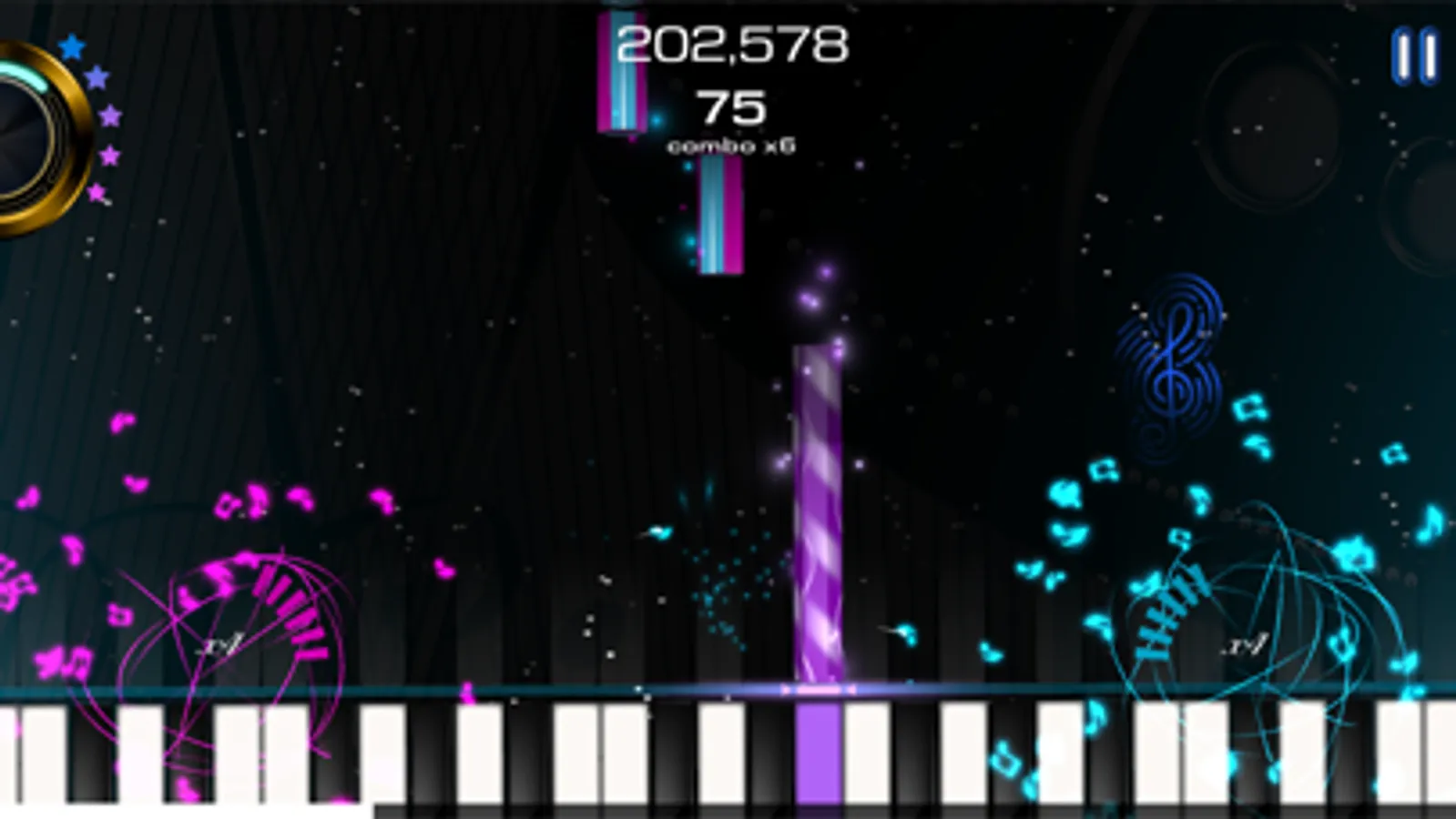 * Easy - just tap with left and right thumbs to produce note sound when note hits the keyboard