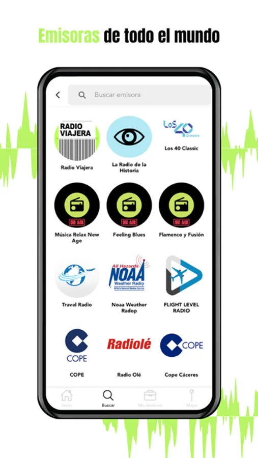 Podrás escuchar emisoras de radio de diferentes lugares del mundo, como www.laradiodelahistoria.com o estaciones de música de diversos géneros, rockabilly, rock, jazz, acid-jazz y muchas más.