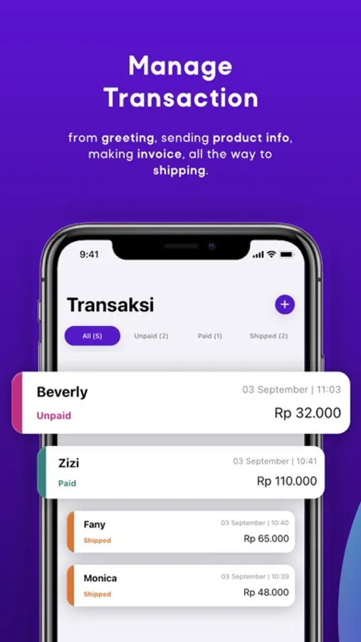 You can easily make transaction invoice and keep track of the status of each transactions.