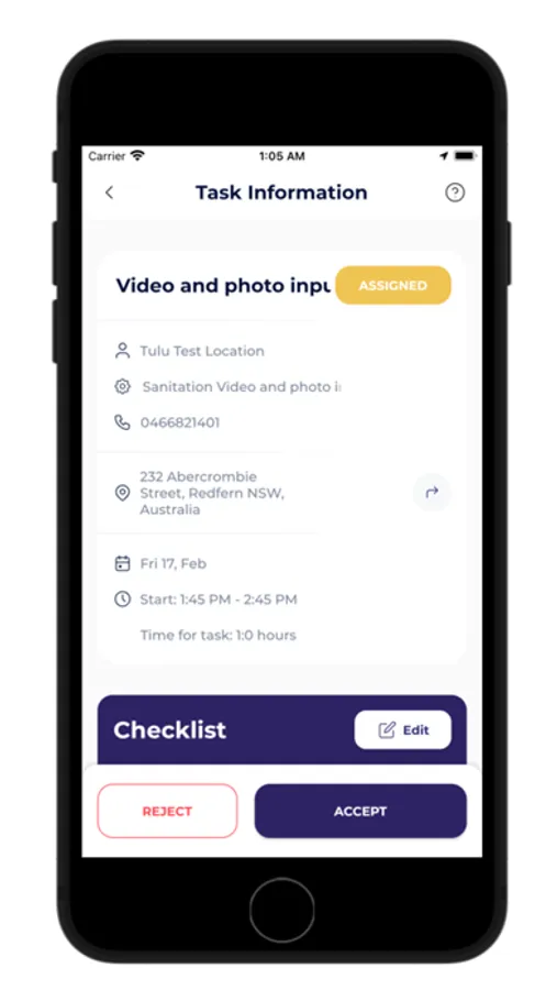 View list of tasks assigned with customised checklists.