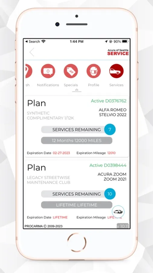 The Acura of Seattle Services app provides a portal for users to: