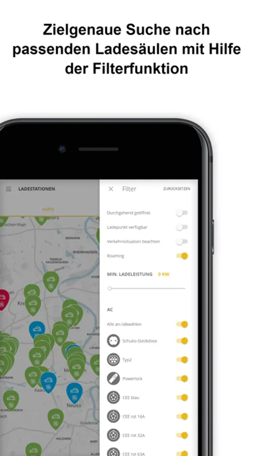 Mit einmaliger Anmeldung in der App stehen Ihnen all diese Funktionen zur Verfügung. Die praktische Filterfunktion erleichtert Ihnen zudem jede Suchanfrage. Speichern Sie einfach Ihre persönlichen Lieblings-Ladestationen in Ihrer Favoritenliste ab. So bleiben Sie in Sachen Verfügbarkeit immer auf dem Laufenden.