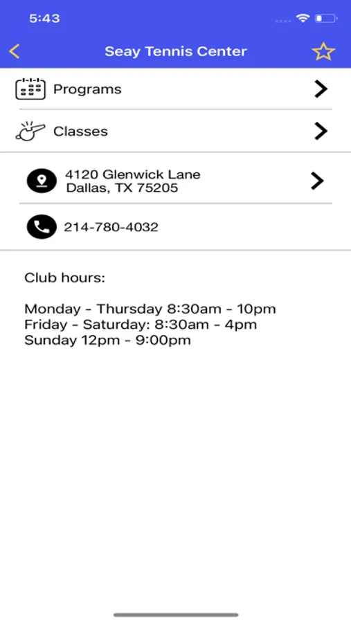 Seay Tennis Center serves Dallas, TX as one of the premier tennis centers in the area. With eight outdoor and three indoor tennis courts, STC offers a wide variety of tennis programming for all ages. STC is home to the prestigious Highland Park High School tennis team. Download the app to view basic information about the center, view and update profile information, statements and check-in history, and search for programs and classes.