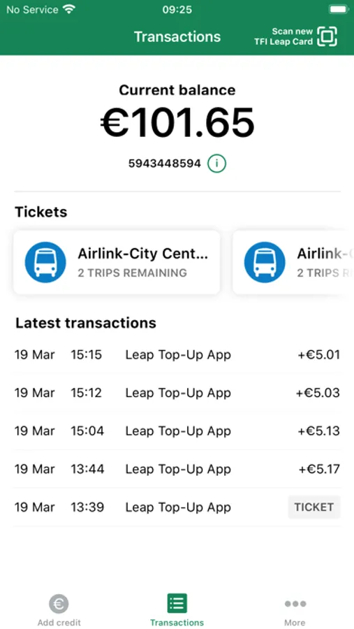 This official Leap Top-Up app from Transport for Ireland (TFI) allows you to check your balance and top-up your TFI Leap Card - directly from your NFC-enabled iPhone.