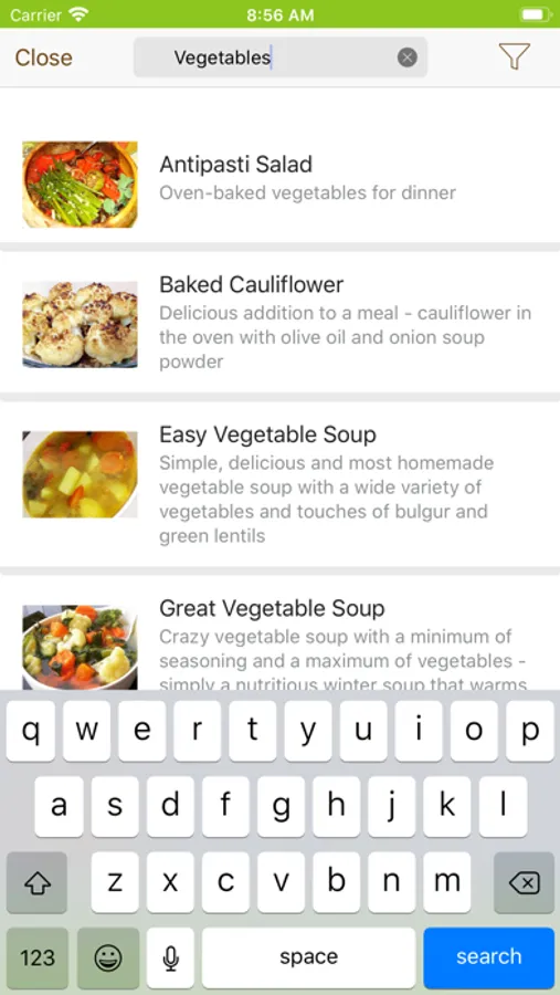 Huge selection of vegan recipes: In the app you can find the recipes using the search button of course (top right), sorting categories according to recipe type (e.g. vegan foods for children, pies recipes, sweet / dessert vegan recipes, healthy vegan recipes, diet recipes, chocolate recipes, vegan cake recipes and more).