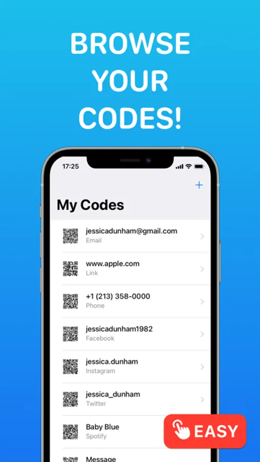 ٞQR Code Reader enables you to scan QR Codes or Barcodes with using your camera in 1 second! It’s the easiest QR Code scanner you will ever use! You can generate QR codes for any website or you can select from 15 types that will make you choose whether you like to make a code for a phone number, email, social media and etc.