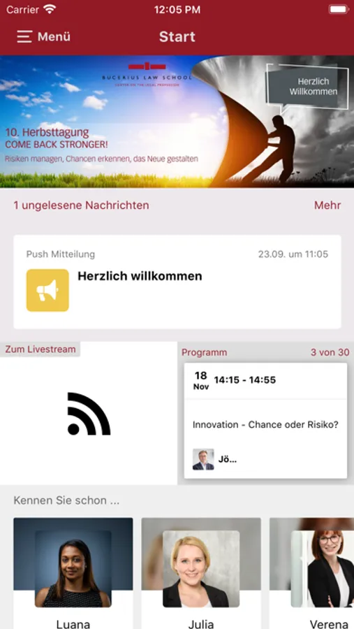 Die Event-App der Bucerius Law School bietet Ihnen einen direkten Zugang zu einer von der Bucerius Law School organisierten und durchgeführten Veranstaltung, wie z.B. Tagungen, Konferenzen oder Kongresse. Mit der App profitieren Sie von vielen Funktionen: a) vor, während und nach dem Event mit anderen Teilnehmenden austauschen, b) persönliche Agenda planen, c) Fragen einsenden, d) Notizen verwalten und vieles mehr. Bei rein virtuellen Events können Sie die Vorträge bequem per Livestream vom heimischen Schreibtisch verfolgen.