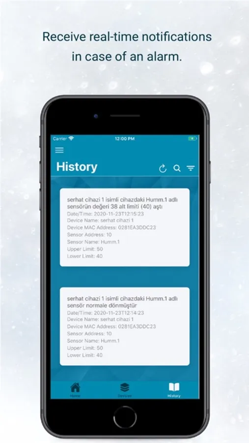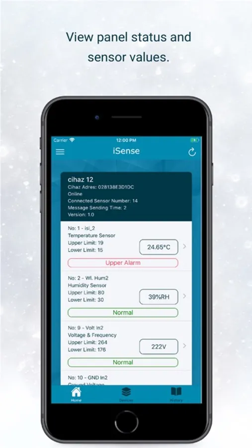 iSense measures the temperature, humidity, voltage and frequency changes, water-leakages and smoke in the environment. It consists of sensors and monitoring panel. User sets upper and lower limits to receive alarm with push notification, email and SMS.